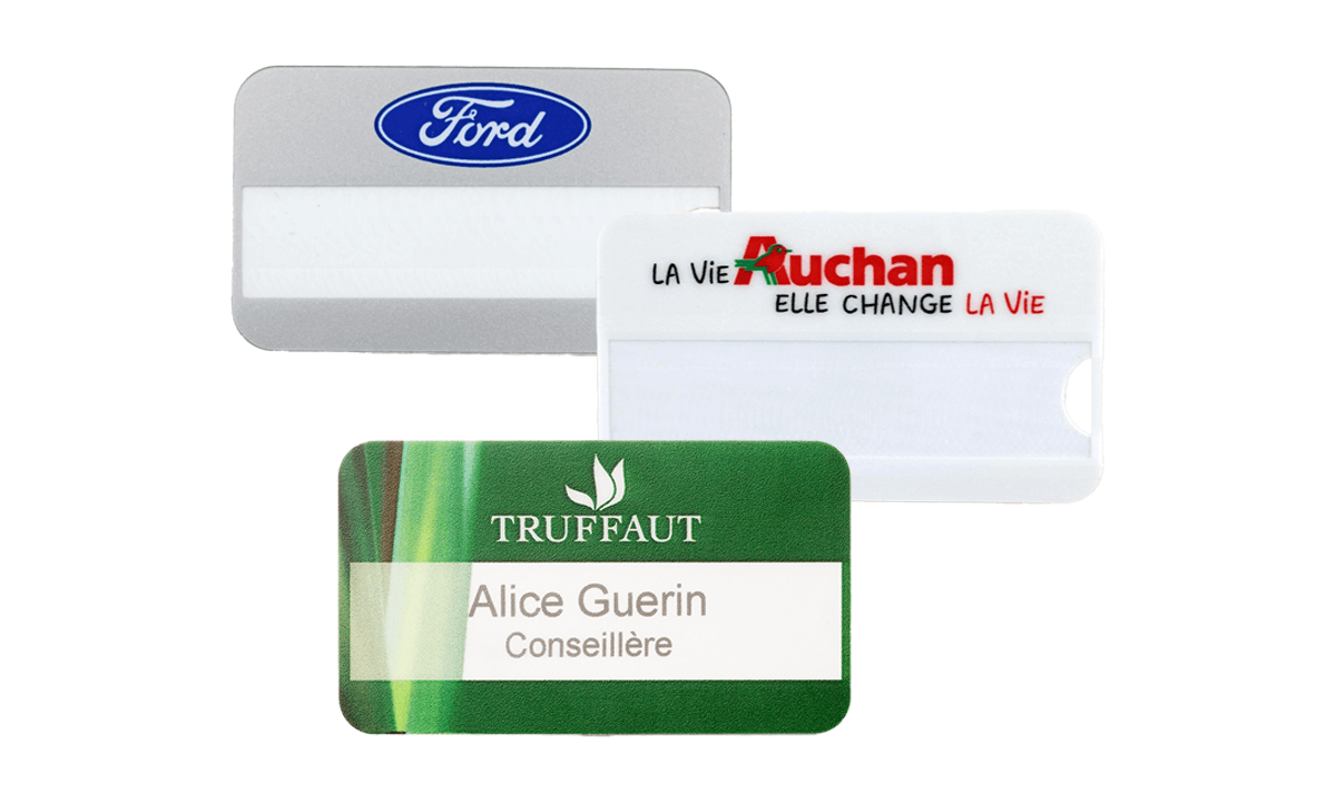 ¡Los identificadores Selfit DoubleLine son completamente reutilizables!Su logotipo queda impreso y sellado bajo una capa protectora antiarañazos. Después de cada evento, podrá cambiar la plantilla de papel (disponible por separado) que se inserta en una ventana oculta. Así podrá utilizar los identificadores todas las veces que quiera.