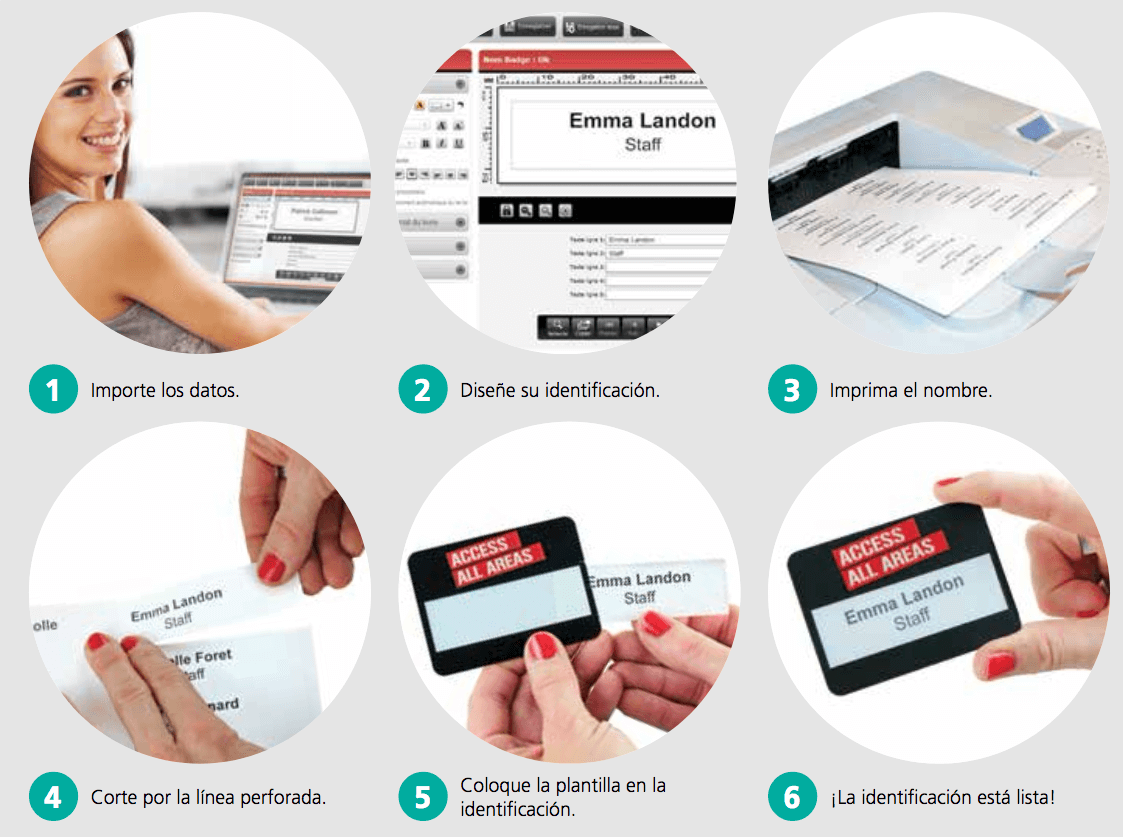 Imprima sus plantillas en el momento y cree identificaciones de gran calidad de forma rápida y sencilla Nuestro sistema exclusivo y patentado Selfit® le ahorrará tiempo, dinero y confusiones. Para crear identificaciones perfectas cada vez que las necesite, sólo tiene que: